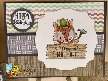 The kits come with patterned paper, base cardstock, tin pin embellishments and stamps I stamped the images onto white watercolor paper the dabbed water based ink from Tombow markers onto my glass mat. I then picked up the color with a wet paintbrush and colored the stamps trying to match the tones on the tin pins. Exact matching isn't necessary. Sometimes close enough, is close enough!
